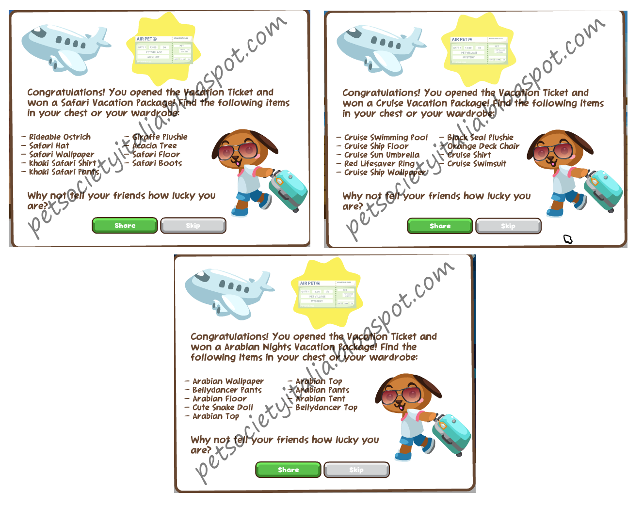 volevo fare una domanda... come funzioneranno gli item delle vacanze??? compriamo il biglietto e abbiamo tutte quelle cose favolose oppure dobbiamo prendere 3biglietti per i 3 diversi scenari???